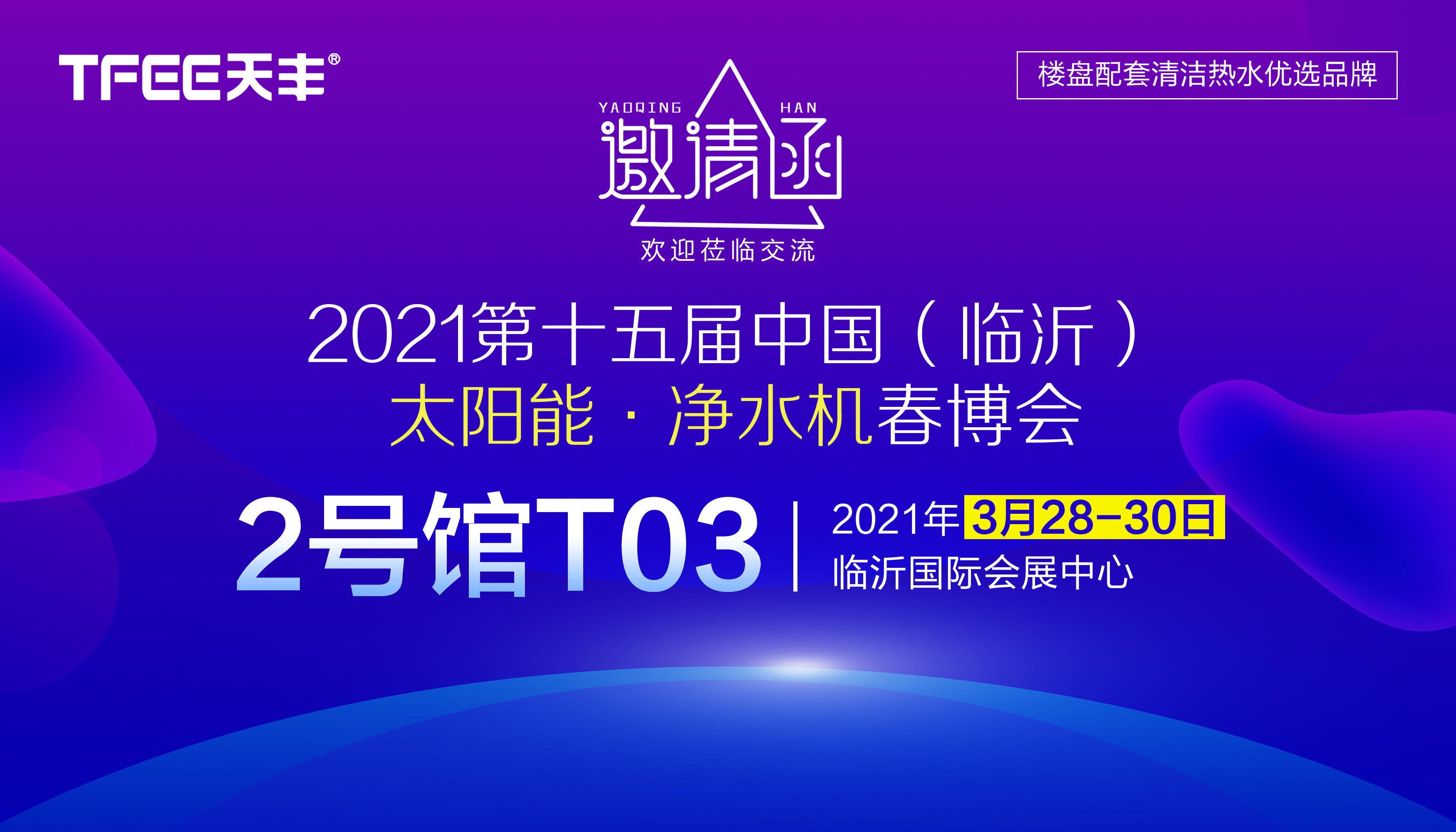 3月28日-30日,第十五屆中國(臨沂)太陽能?凈水機(jī)春博會(huì)(以下簡稱春博會(huì))將在臨沂國際會(huì)展中心開幕,作為受行業(yè)關(guān)注的實(shí)力品牌之一,在會(huì)上,天豐新能源也將攜硬核產(chǎn)品矩陣盛裝亮相,鎖定2號(hào)館T03展位,呈現(xiàn)全資質(zhì)全系列精品以及光熱專業(yè)工程場景解決方案,以C位之勢,打造行業(yè)一流品牌盛宴。